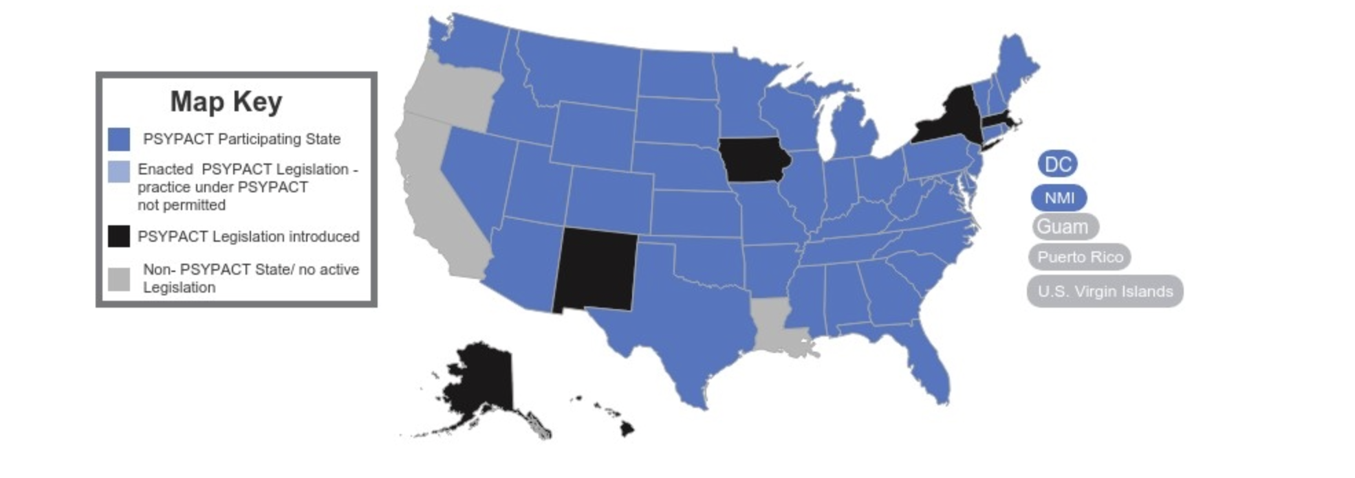 PSYPACT (Psychology Interjurisdictional Compact) is an interstate compact that allows licensed psychologists to provide telepsychology services to clients located in participating states.